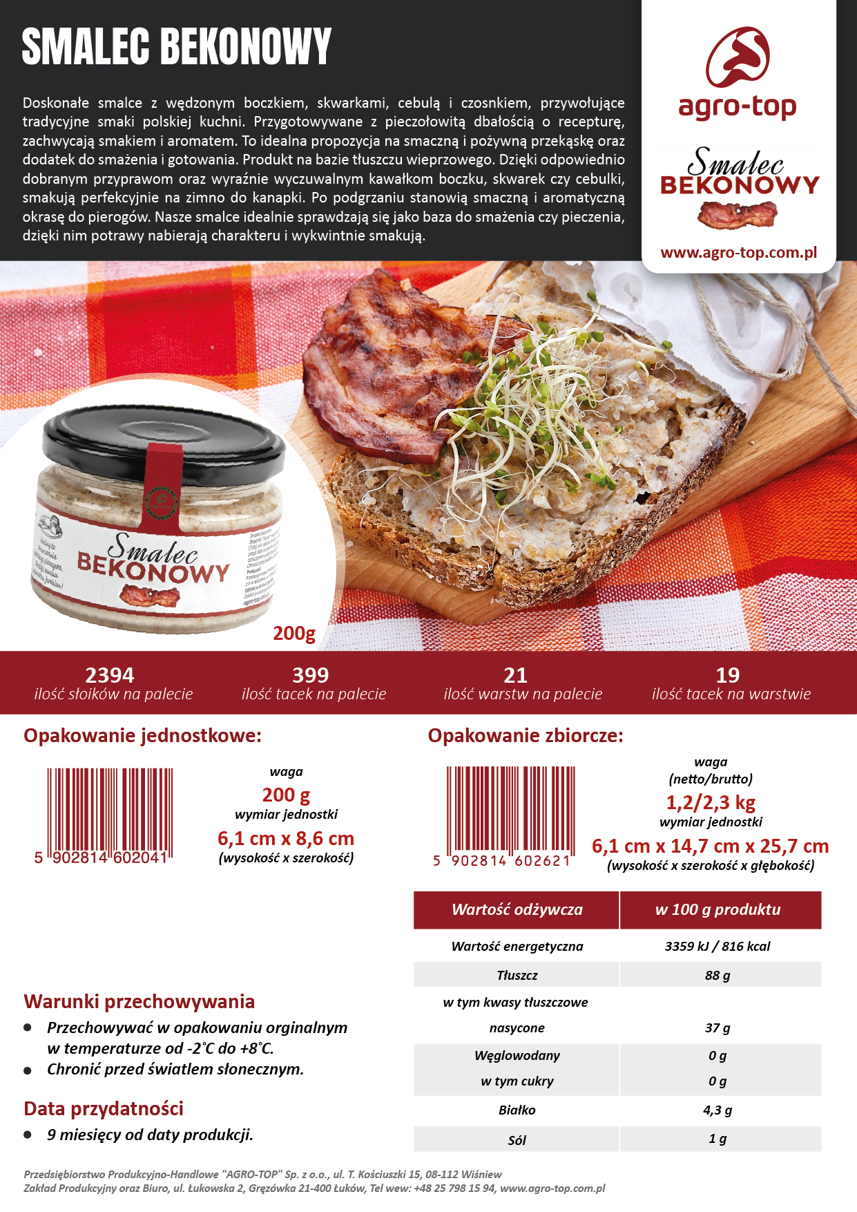 Jaki jest skład Smalcu Bekonowego Agro-Top?