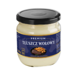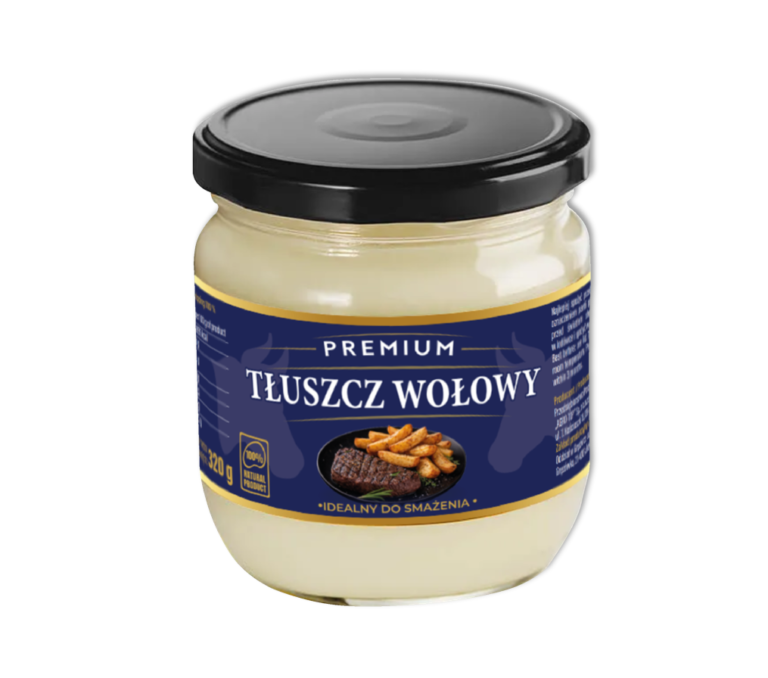 Słoik 320gDoskonałej jakości tłuszcz spożywczy pochodzenia zwierzęcego, otrzymany przez tradycyjne wytopienie z tkanki tłuszczowej bydła. Wysoki poziom kwasów tłuszczowych nasyconych poprawia stabilność temperatury oraz zmniejsza wrażliwość na utlenianie, dzięki czemu produkt może być używany do smażenia i pieczenia. Nasz tłuszcz charakteryzuje się delikatnym, mlecznym zapachem oraz znakomitymi parametrami fizyko-chemicznymi. Dzięki niepowtarzalnemu smakowi oraz jedwabistej teksturze bardzo często używany jest przez renomowanych szefów kuchni. Belgowie używają produkt dla otrzymania doskonałych frytek, zaś Brytyjczycy dodają do słynnej potrawy „ Fish & Chips”. Produkt rekomendowany jest także jako dodatek do sosów i zup.
